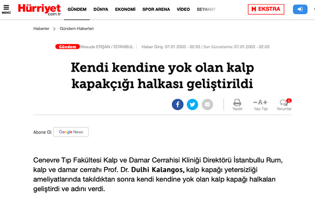 Ord. Prof. Dr. Afksendiyos Kalangos kalp damar cerrahisinde kullanılan, biyolojik olarak parçalanabilen Kalangos Halkası’nın da mucididir. Kalangos halkası, mitral ve triküspit kalp kapakçıklarının dilate anulüsünün cerrahi olarak düzeltilmesini sağlar.1
